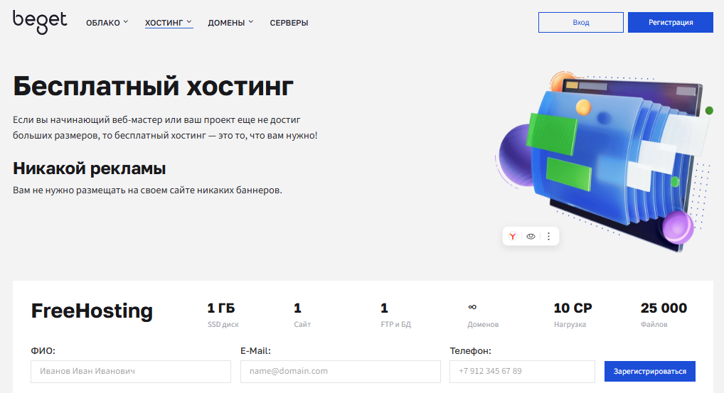 Описание бесплатного хостинга beget.com: