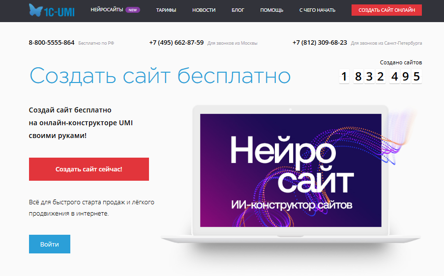 Описание бесплатного хостинга https://umi.ru/ :